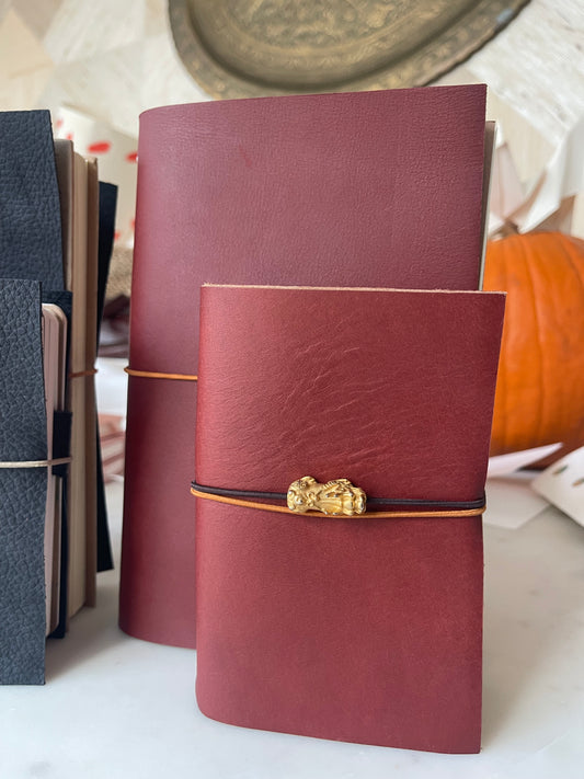 Our new addition to our one of a kind stationery offerings, pocket leather journals.
